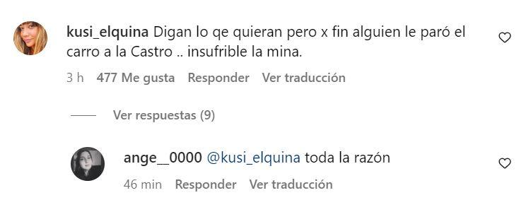 Quienes apoyan a Daniela Aránguiz, sostienen que la ex ganadora de Master Chef hace comentarios "pasivo-agresivos" recurrentemente. Además de que "tira la piedra y esconde la mano". También alegan que Castro es muy cahuinera.