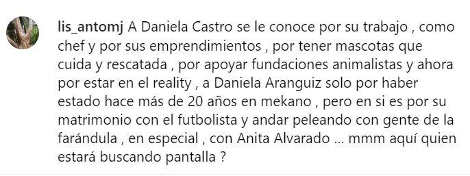 Quienes apoyan a Dani Castro con lo hacen por dos siguientes razones: creen que Daniela Aránguiz exageró o no les agrada Aránguiz desde antes (por su polémico pasado con su ex esposo).