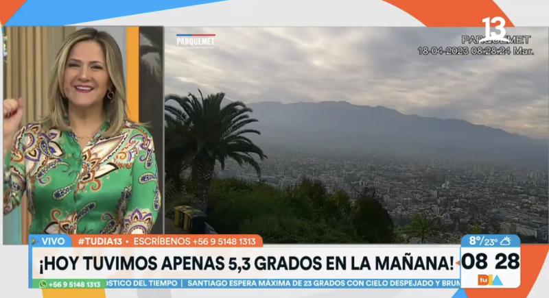 “¡Definitivamente hoy día! ¿Se acuerdan que ayer dijimos probablemente no sea ayer sino que soy hoy el día el día más frio de lo que va del año? ¡Así es! Tenemos una temperatura baja hasta ahora de la mañana, pero saben cuál fue la mínima realmente, fue de 5,3 grados a las 4 de la mañana con 11 minutos, acá en el centro de Santiago en Quinta Normal”.