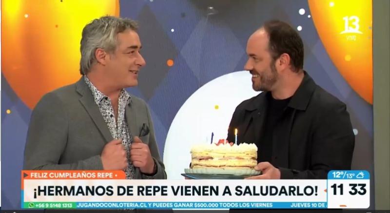 Precisamente, al estudio llegaron los hermanos del animador, Alejandro y Cristián Repenning, con una torta de cumpleaños salada.