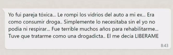 "Empiezas a darte cuenta en la cantidad de mensajes y cuando ya te tiene, porque te observa, te analiza, te digo lo que tú quieres escuchar para entrar en tu vida. Te empiezo a hacerf dependiente. Y cuando ya te hago dependiente empiezo a jugar contigo", explica la psicóloga, que asegura que estas personas tienden a desaparecer y aparecer a su antojo, para controlar a sus víctimas.