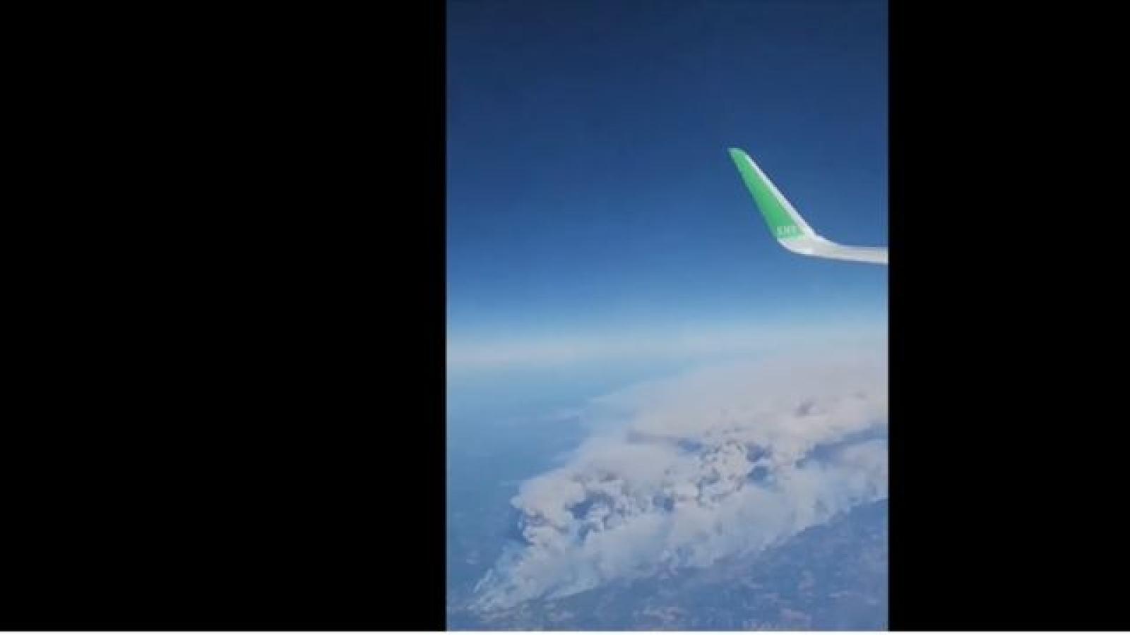 Precisamente, en las imágenes tomadas desde las alturas, se ve una gran nube negra de humo de los incendios que están afectando a la zona centro-sur del país. Con esto, se da cuenta de la gran intesidad con la que se han registrado los incendios.