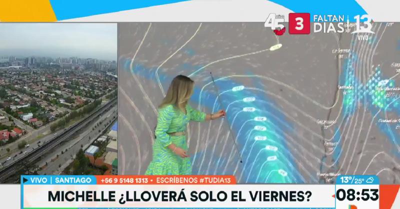 "El día viernes hay lluvia en la zona central. Viernes durante gran parte del día o directamente todo el día", agregó Michelle.