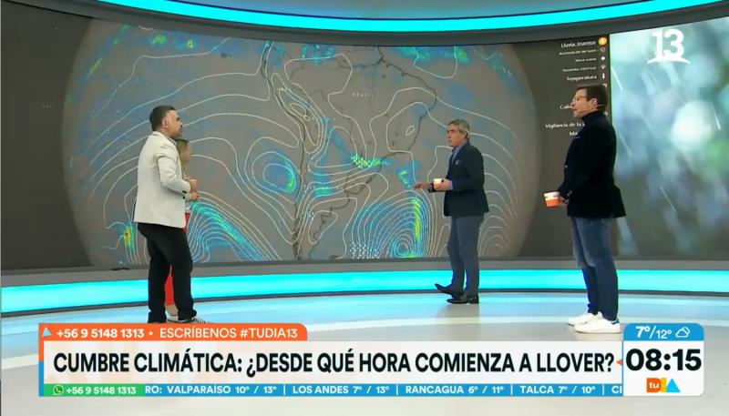Al ser consultada sobre cuándo y a qué hora lloverá en Santiago, Michelle anunció que "la lluvia plena va a ser hoy en la noche-madrugada, y mañana también. O sea esperamos aproximadamente, precipitaciones que van a comenzar hoy".