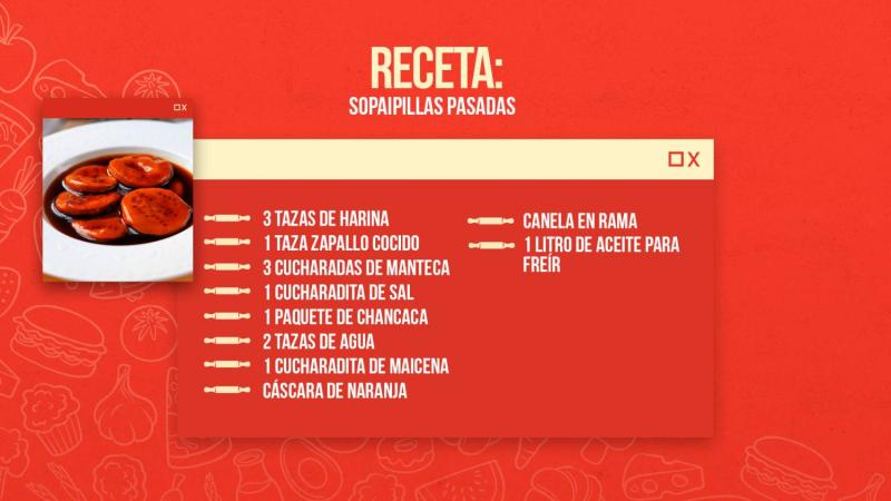 En esta oportunidad la receta que nos enseñaron a preparar, junto al gentil auspicio de Del Valle, fueron unas deliciosas sopaipillas pasadas y para ello necesitas los siguientes ingredientes: