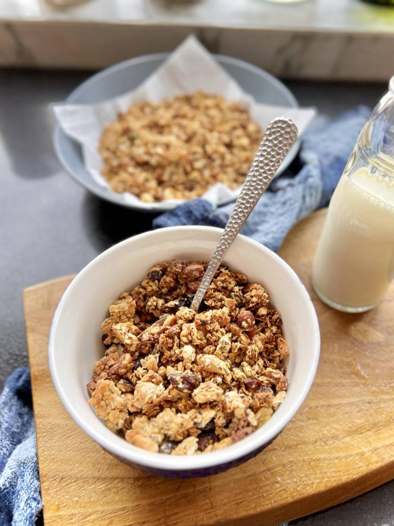 5. En una budinera armar una cama de papel absorbente Nova® para dejar reposar la granola hasta que este fría.