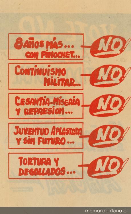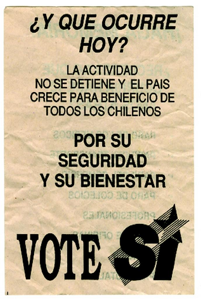 Pero no fue tan simple como decidir aquel día. Ambos bandos, del "NO" y el "SÍ", tuvieron una dura campaña previa, que incluía la convocatoria a diversas marchas por las calles de Santiago y regiones, invitando a los ciudadanos a elegir con consciencia a partir de su realidad país. Estas eran algunas gráficas: