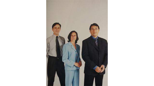 Julio Enrique de Villegas (izq) , y Pablo Hernández (der) ambos periodistas realizadores de Diagnóstico.En medio Rossana Bontempi.