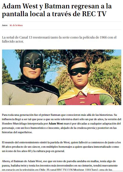 1-Adam West y Batman regresan a la pantalla local a través de REC TV (La Tercera)